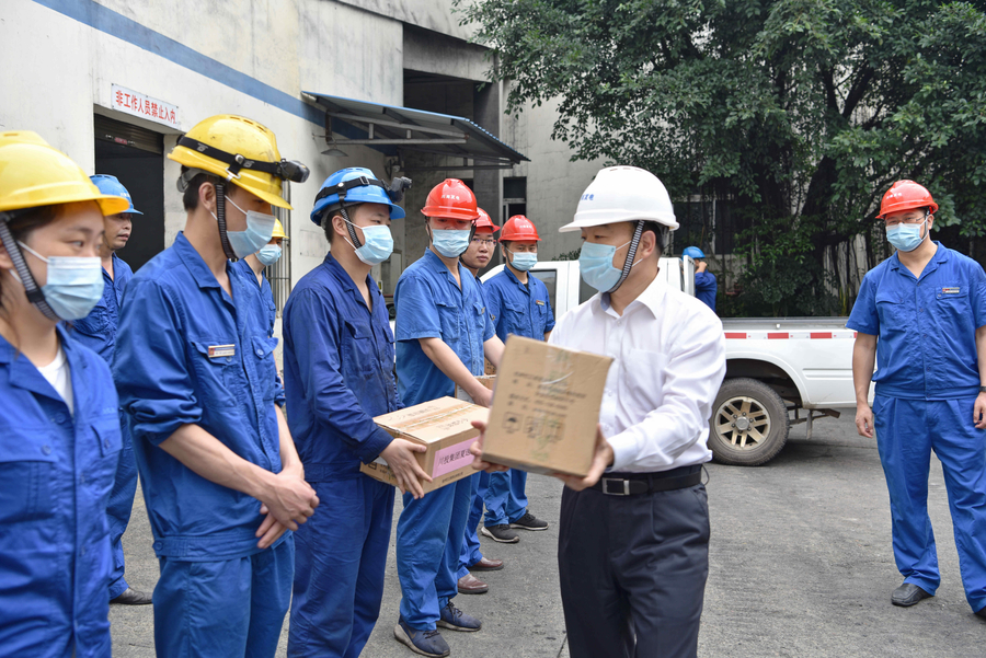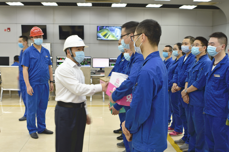 田雨晴組長(zhǎng)首先到川南發(fā)電公司集控室和燃煤檢驗(yàn)現(xiàn)場(chǎng)看望奮戰(zhàn)在生產(chǎn)一線的工作人員,慰問(wèn)在烈日下?lián)]汗如雨,默默工作的現(xiàn)場(chǎng)員工,為大家發(fā)放防暑降溫的清涼用品,囑托大家在夏季工作過(guò)程中一定要注意防暑,代表集團(tuán)公司感謝大家在酷暑難耐的氣溫下依然堅(jiān)守崗位、兢業(yè)奮斗,及時(shí)把集團(tuán)的關(guān)懷和情意傳達(dá)至每一名員工?,F(xiàn)場(chǎng)員工一致表示:不管氣候多么惡劣,一定會(huì)一如既往地堅(jiān)守崗位,一如既往做好各項(xiàng)工作,不忘初心,敬業(yè)奉獻(xiàn),擼起袖子加油干,為順利完成企業(yè)年度生產(chǎn)經(jīng)營(yíng)目標(biāo)再立新功。