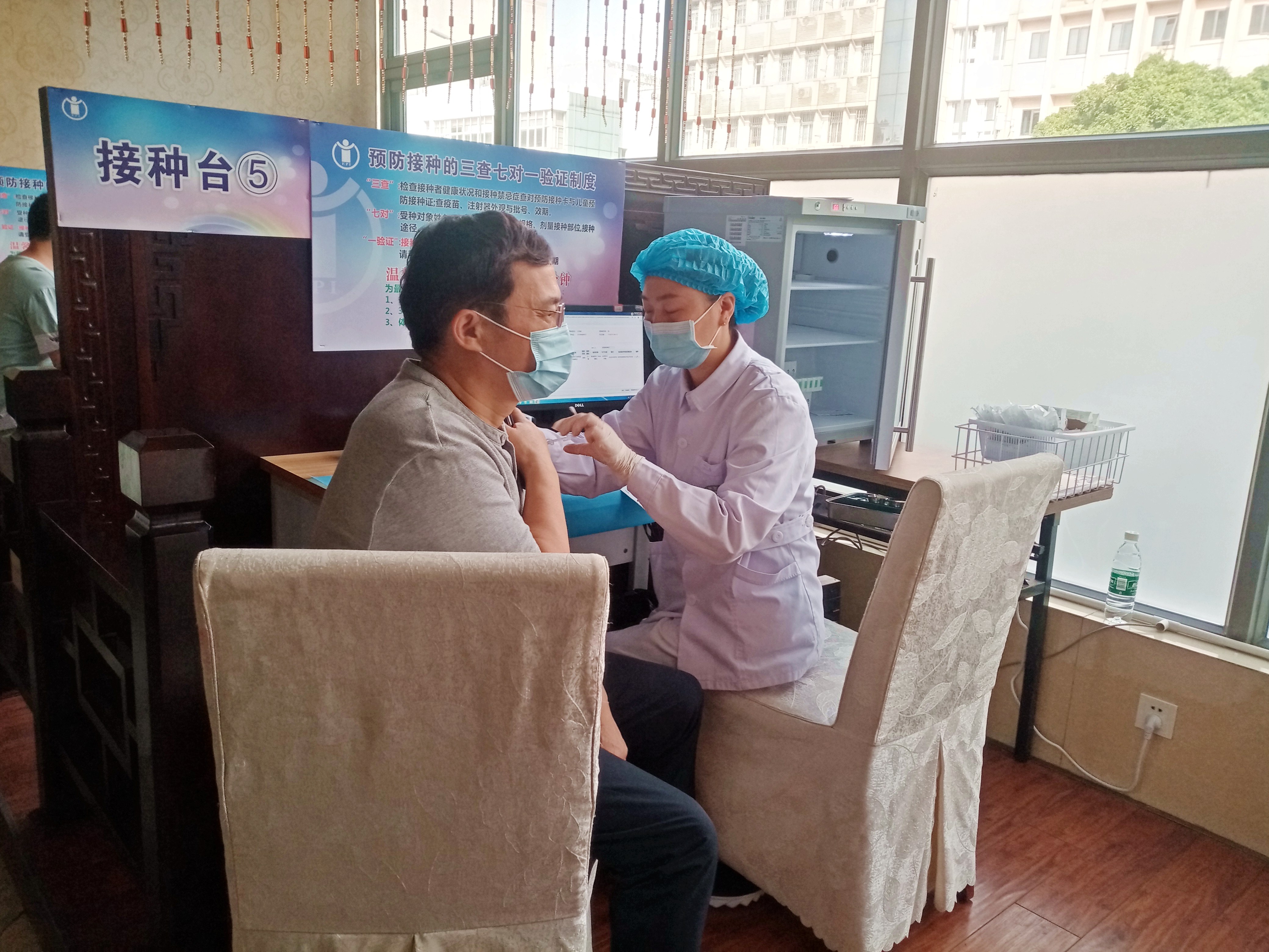 這天早上,在該社區(qū)衛(wèi)生服務(wù)中心,73人早早地排上了隊(duì)依次出示身份證、出示健康碼、測(cè)量血壓、核實(shí)登記、注射疫苗。疫苗接種工作開(kāi)展得有條不紊,按順序一步一步下來(lái),人均不到一小時(shí)就完成了所有工作。