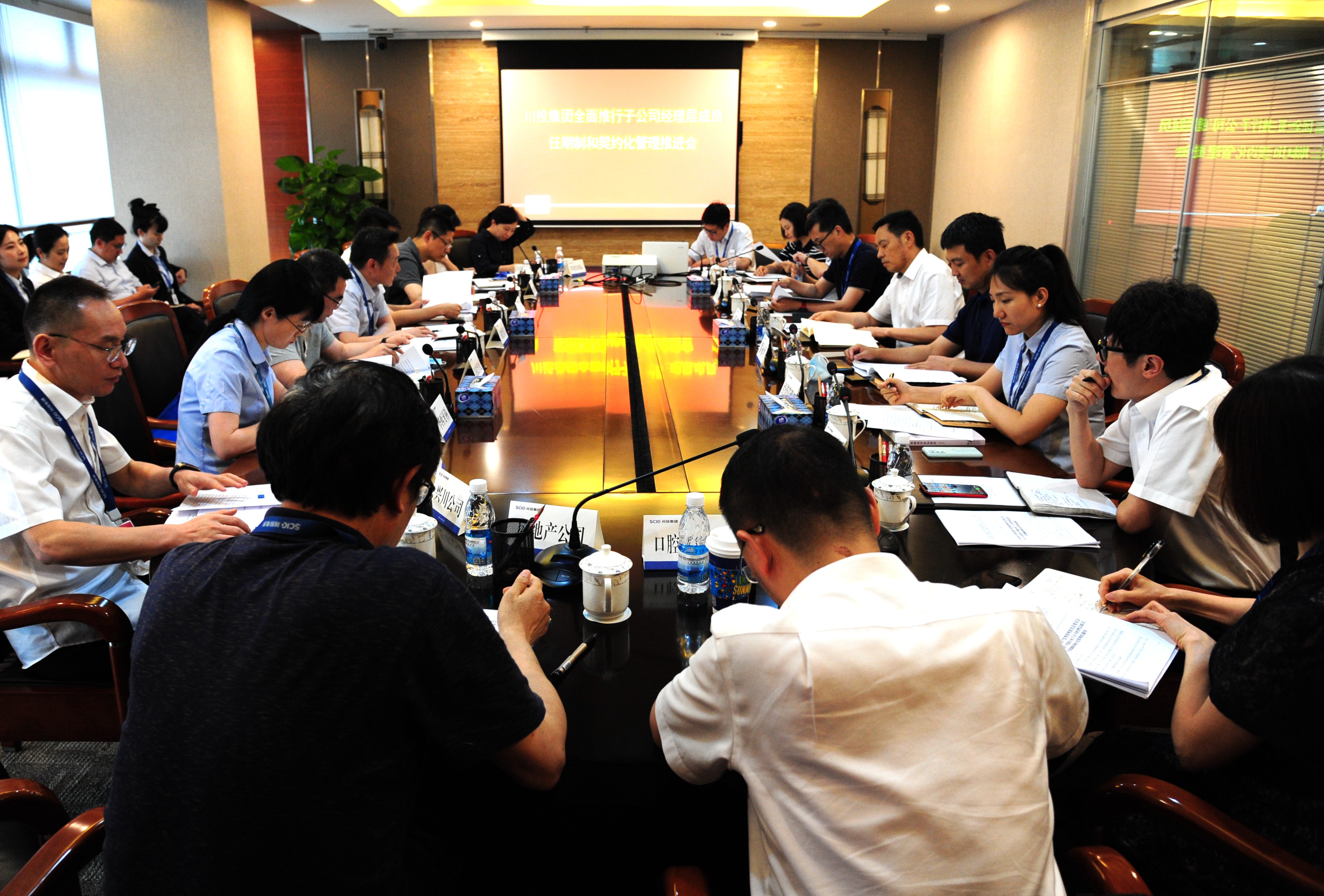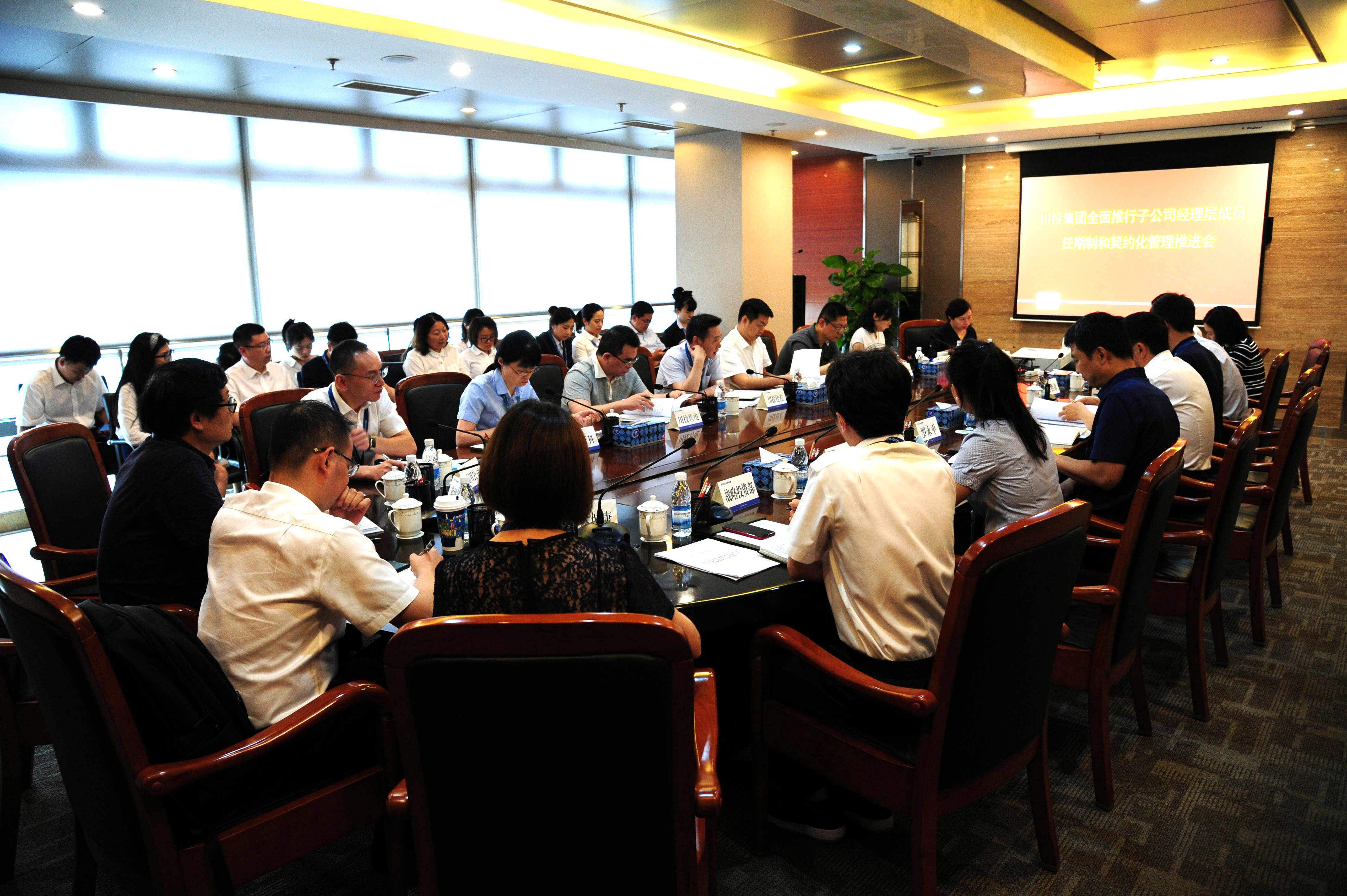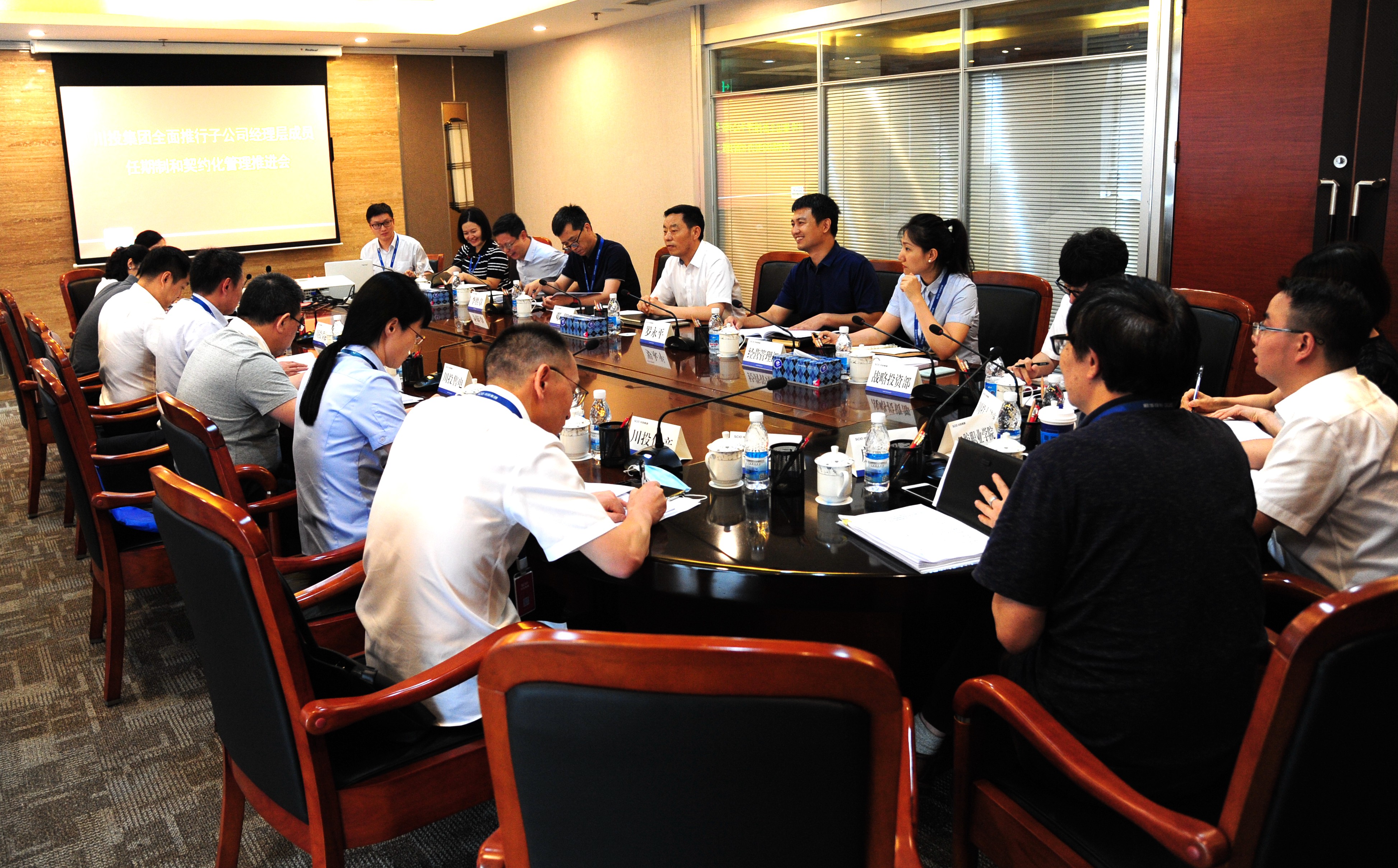 6月24日,川投集團(tuán)召開(kāi)所屬公司全面推行經(jīng)理層成員任期制和契約化管理工作推進(jìn)會(huì)。集團(tuán)公司黨委副書(shū)記、董事鄧凱,黨委委員、副總經(jīng)理羅永平,總經(jīng)理助理、經(jīng)營(yíng)管理部部長(zhǎng)李勝章出席會(huì)議。集團(tuán)公司人力資源部部長(zhǎng)張鵬舉主持會(huì)議。