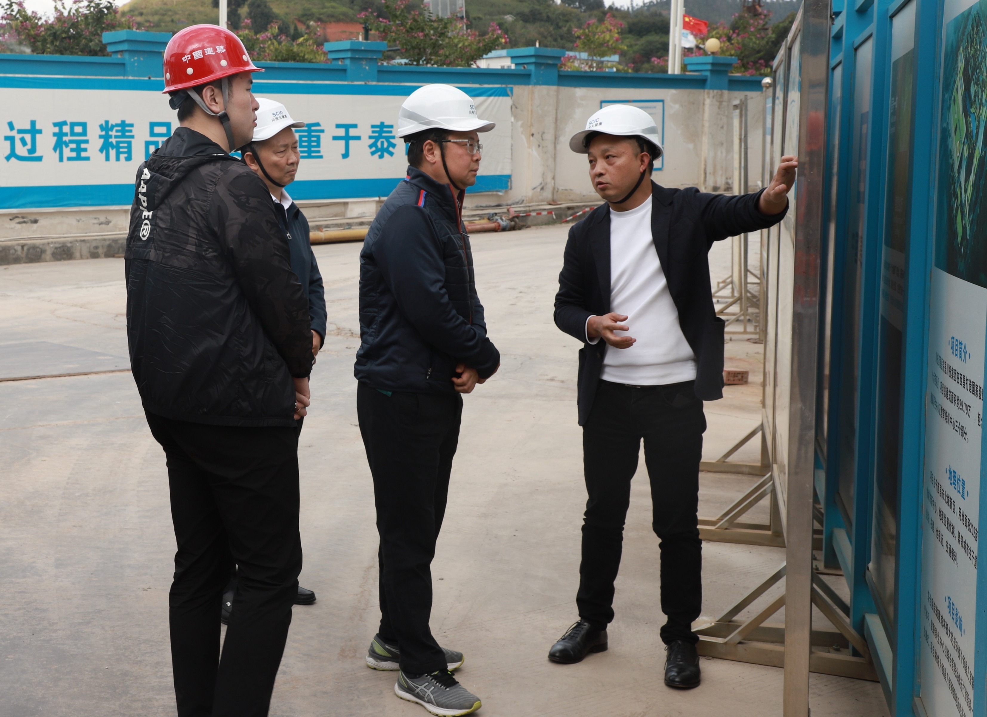 舒勇一行在施工現(xiàn)場分別了解了兩個項目的總體規(guī)劃、建設(shè)情況,調(diào)研了工程質(zhì)量、安全環(huán)保管理、現(xiàn)場管理、室內(nèi)裝修等情況。