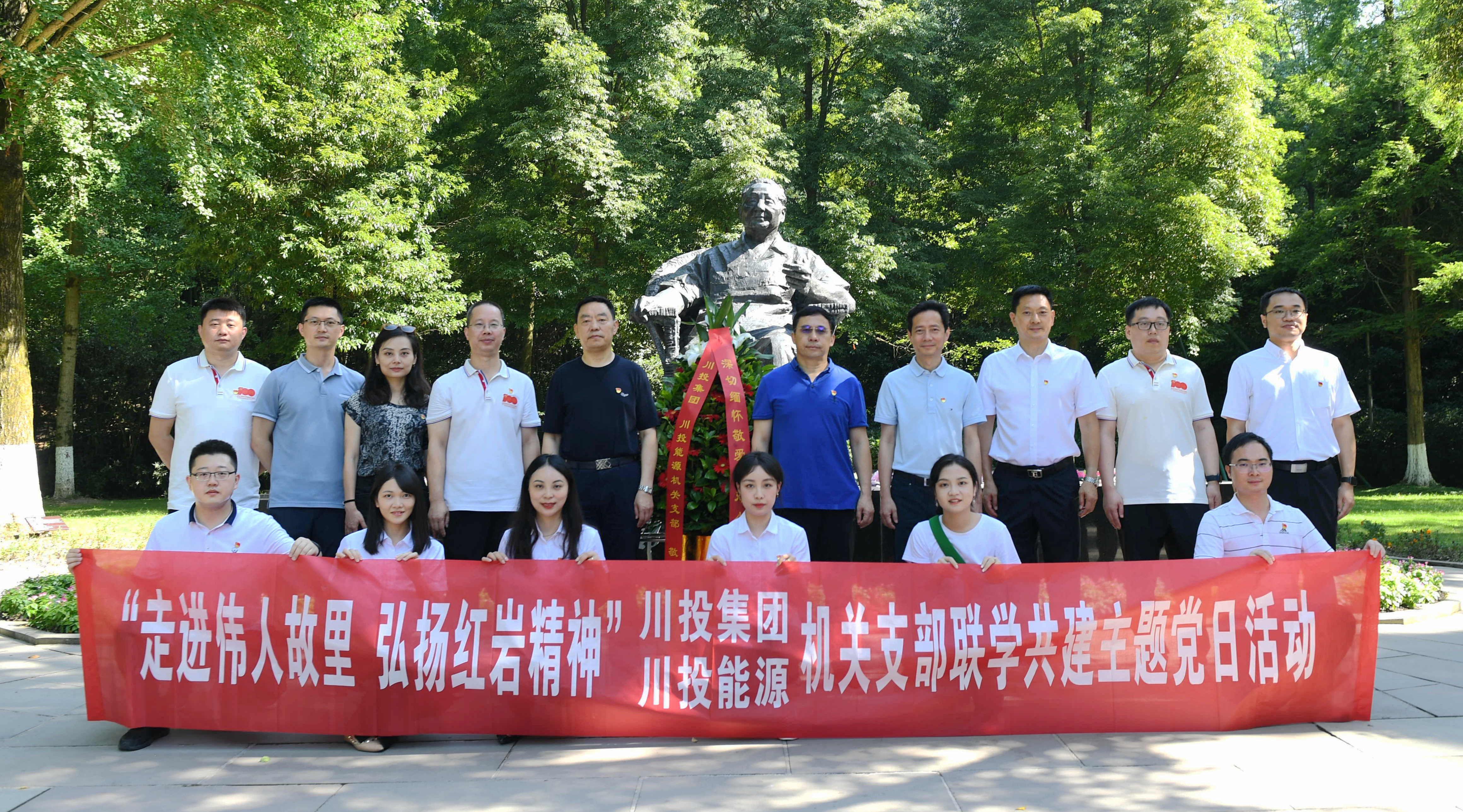 在建黨101周年之際,7月7日至8日,川投集團(tuán)、川投能源機(jī)關(guān)支部赴廣安市開展“走進(jìn)偉人故里,弘揚(yáng)紅巖精神”聯(lián)學(xué)共建主題黨日活動(dòng),緬懷偉人豐功偉績(jī),弘揚(yáng)先輩奮斗精神,繼承紅色優(yōu)良傳統(tǒng)。集團(tuán)公司黨委副書記、董事鄧凱,黨委委員、副總經(jīng)理王懷林,副總經(jīng)理張昊參加活動(dòng)。