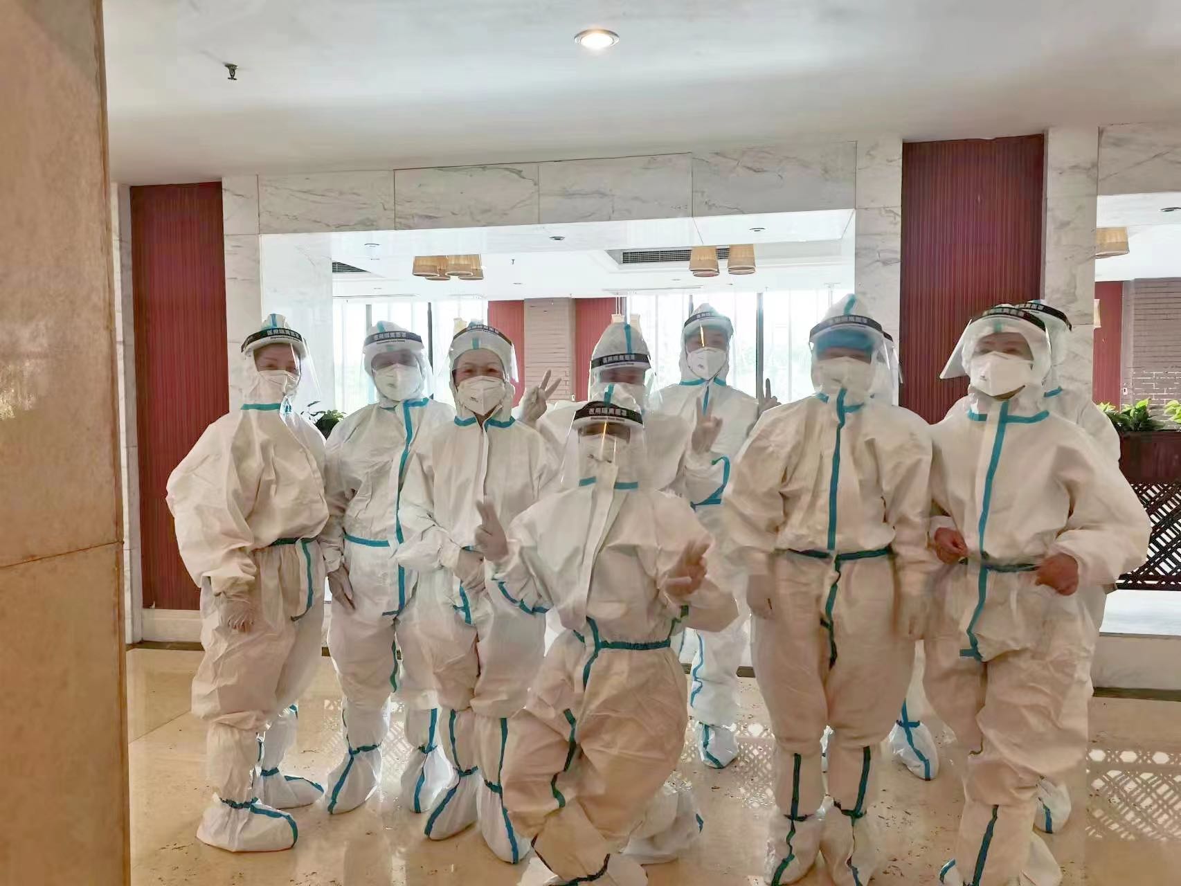 256間客房,在不到一天的時(shí)間內(nèi)完成了消殺布置;2支青年服務(wù)隊(duì)被迅速組建;17人進(jìn)駐商務(wù)樓和主樓進(jìn)行閉環(huán)服務(wù)。