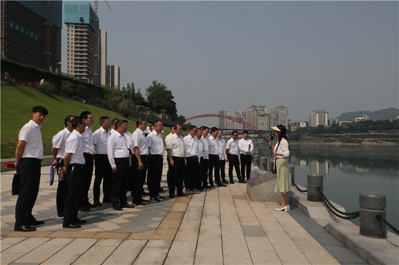 在三江口,兩岸綿延至遠的親水步道,環(huán)境優(yōu)美的長江公園,滿目含翠,鳥翔魚躍,水青、岸綠、景美,一幅人與自然和諧共生的動人畫卷徐徐展開,“共抓大保護、不搞大開發(fā)”的生動實踐呈現(xiàn)眼前。學(xué)員們聆聽宜賓市委黨校副教授廖艷現(xiàn)場講述,了解習(xí)近平總書記在三江口考察長江流域生態(tài)修復(fù)保護、禁捕退捕等情況時的真實場景,身臨其境感悟習(xí)近平總書記關(guān)于“綠水青山就是金山銀山”的發(fā)展理念,深刻領(lǐng)會“筑牢長江上游生態(tài)屏障,以釀美酒的標(biāo)準(zhǔn)守護一江清水”的重要指示和殷殷囑托。